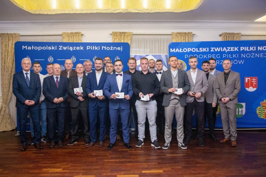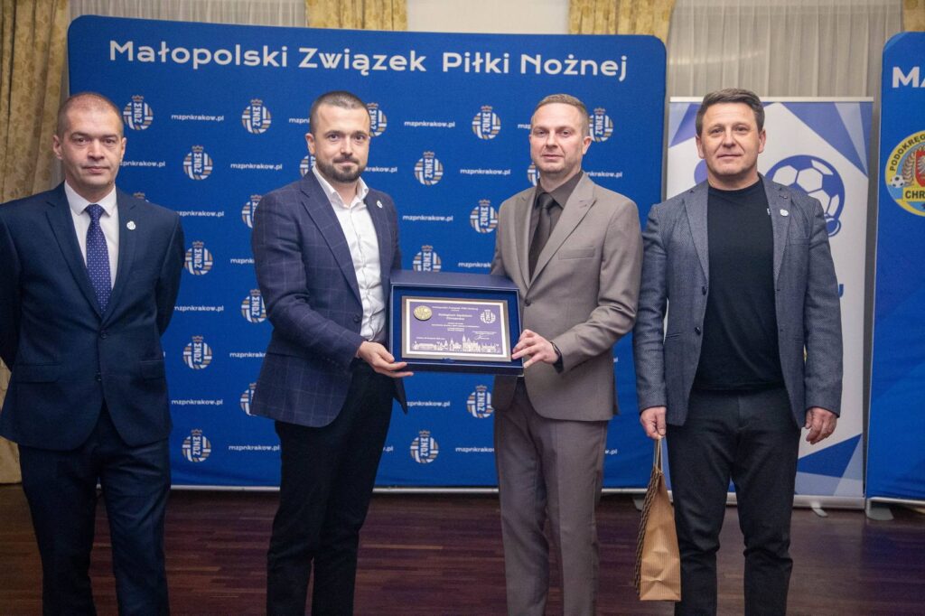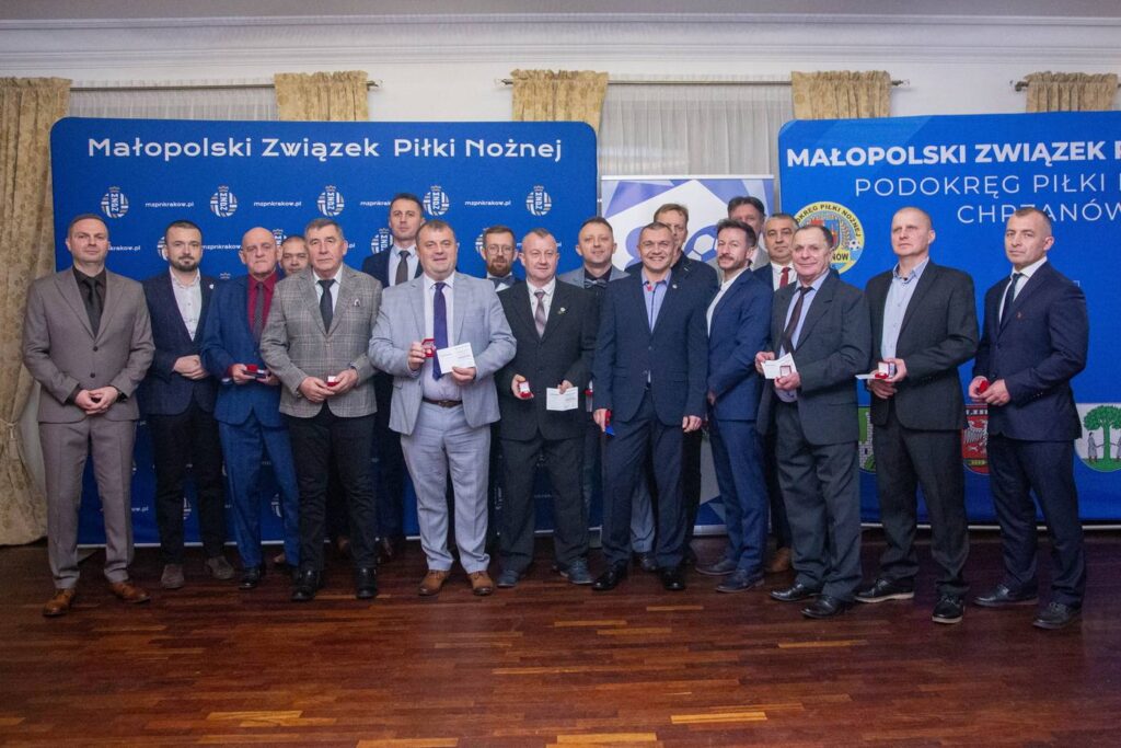 Po krótkim podsumowaniu działalności i przypomnieniu rysu historycznego przyszedł czas na wręczenie pamiątkowych medali🎖️ i odznaczeń🎗️ Małopolskiego Związku Piłki Nożnej i Podokręgu Piłki Nożnej Chrzanów oraz pucharów🏆 za ilość przesędziowanych spotkań i tu warto wymienić: